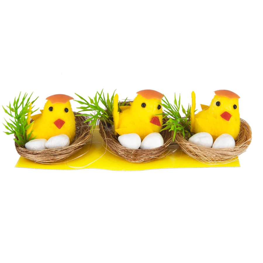 Dekoracje wielkanocne Kurczaczki w gniazdkach 3szt.