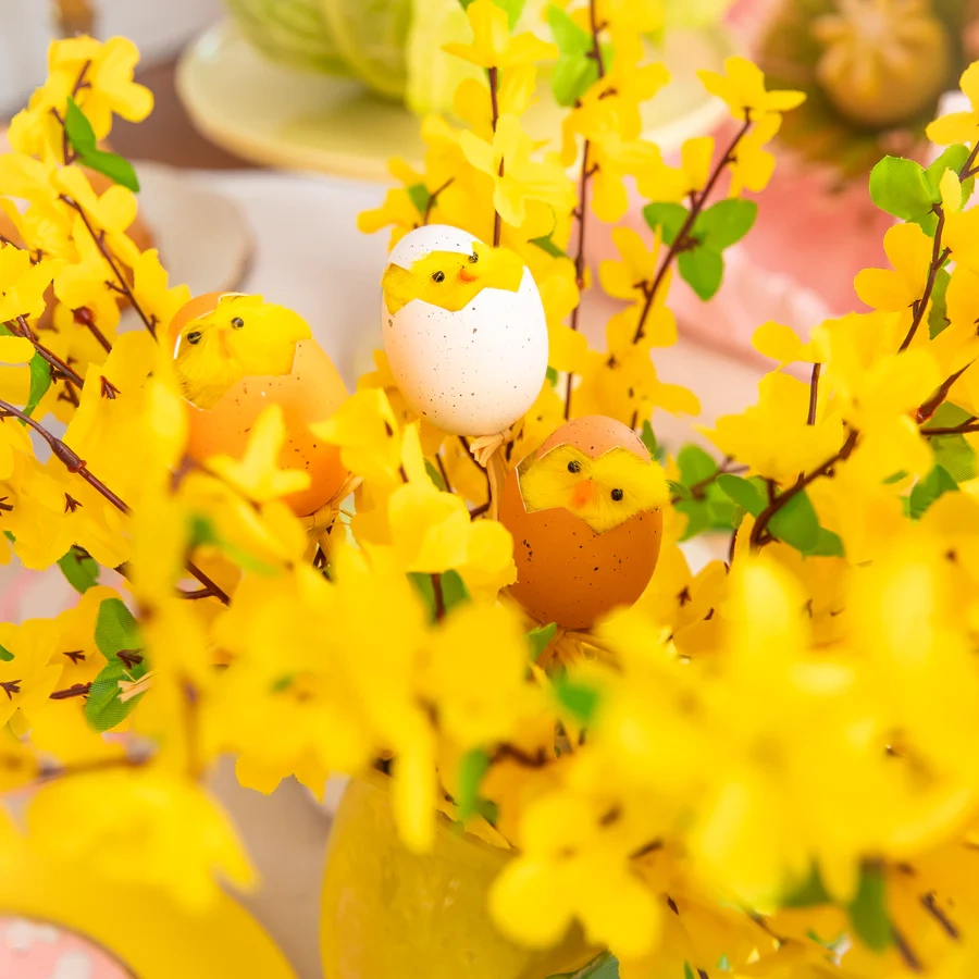 Dekoracje wielkanocne Kurczaki w skorupkach i czapeczkach na patyku