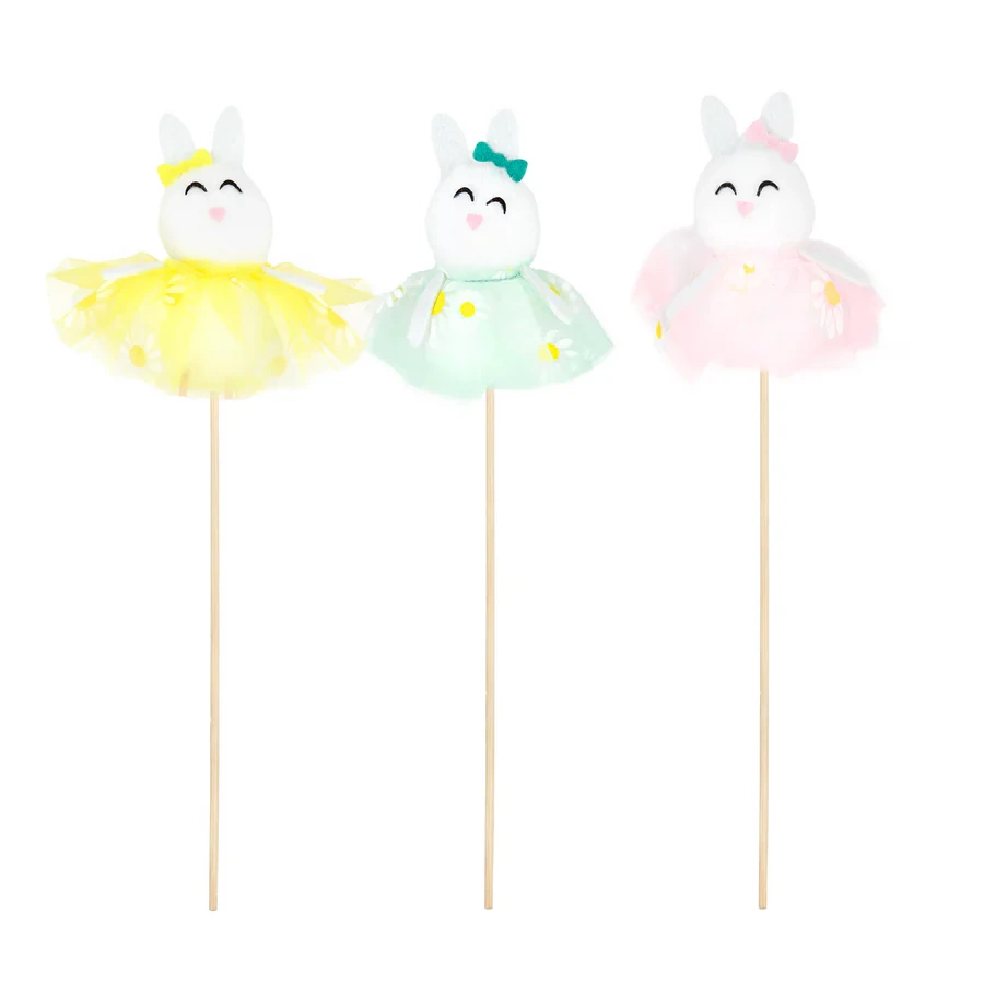 Dekoracje wielkanocne Zajączki w spódniczkach na patyku, 1 szt.