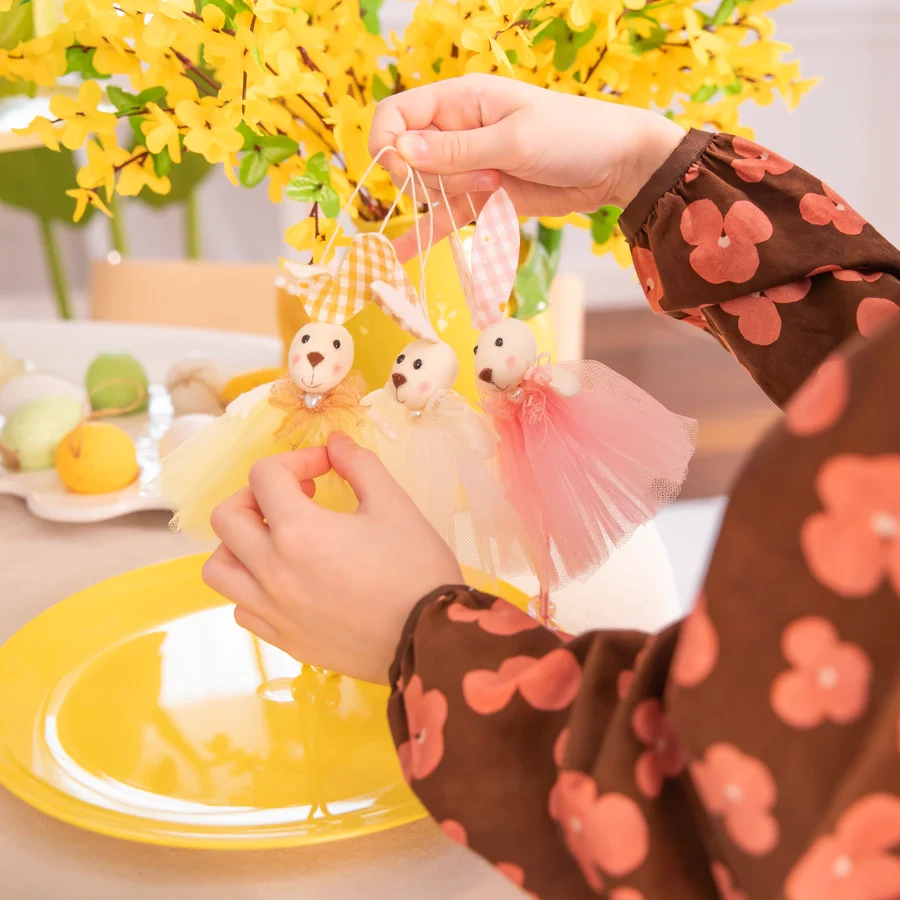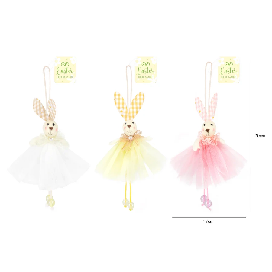 Dekoracje wielkanocne Zawieszki zajączki w kolorowych spódniczkach 1 szt.