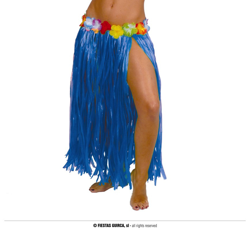 - Hawajska spódnica wykonana z cieńkich foliowych pasków w niebieskim kolorze