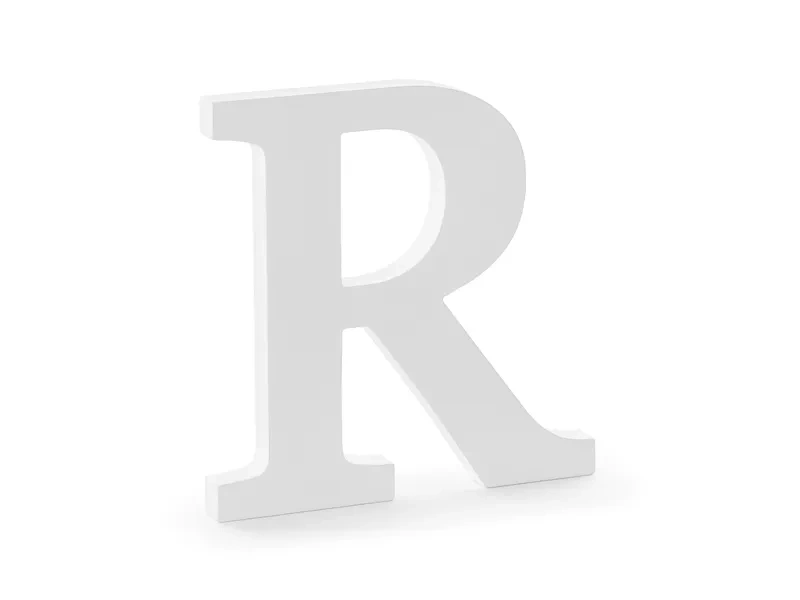 • Litera R wykonana z drewna w kolorze białym, szerokość ok. 19,5 cm, wysokość ok. 20 cm