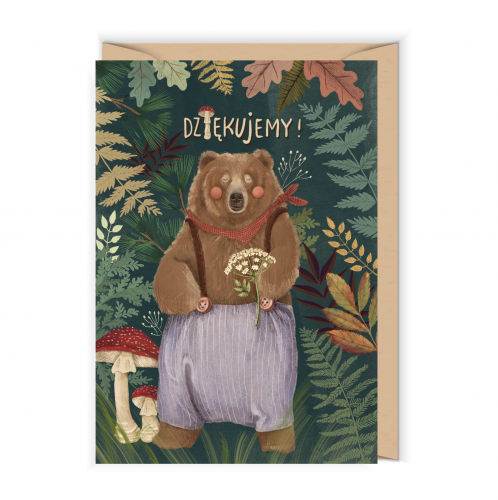 - Otwierana kartka, pusta w środku, wykonana na papierze (z certyfikatem EFC) z wyraźnie widoczną fakturą. W zestawie ekologiczna koperta.