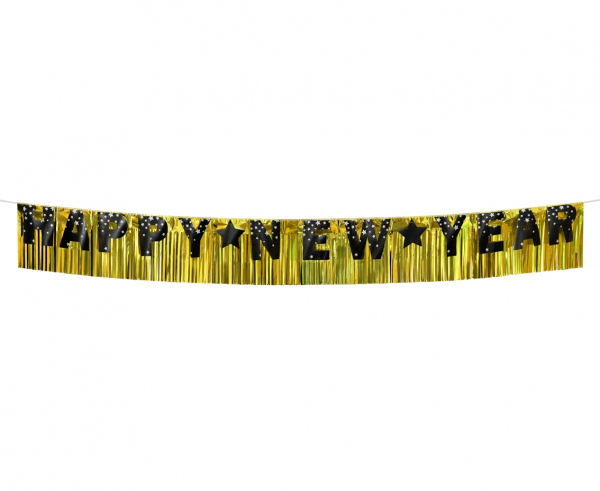 Girlanda papierowa Happy New Year, złote tło, 180x22 cm