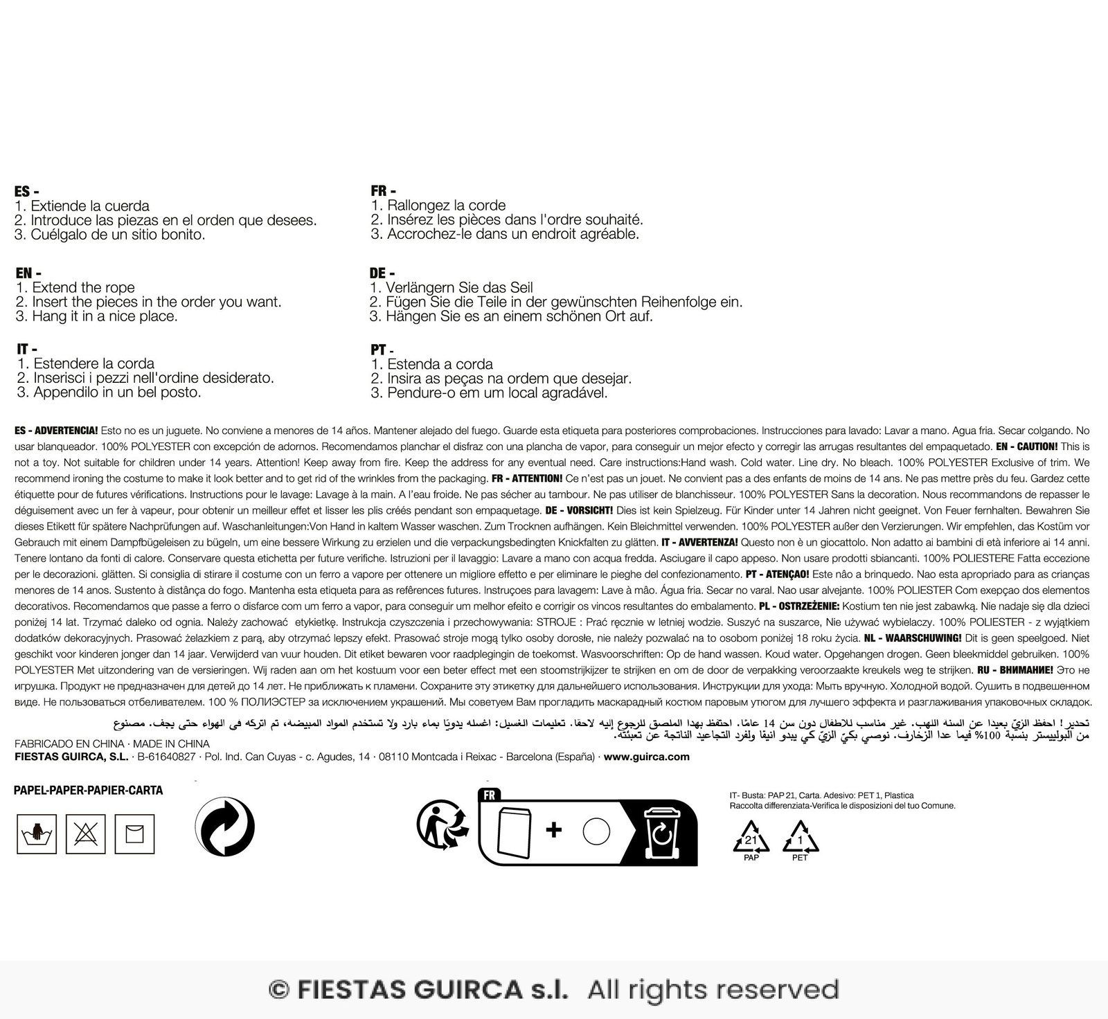 ProducentFiestas Guirca S.L.Adres: Ciutat d'Asunció 56 BisKod pocztowy: 08110Miasto: BarcelonaKraj: HiszpaniaNumer telefonu: +34 933110804Adres email: infoguirca@guirca.com