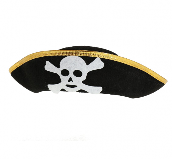 Kapelusz piracki wykonany jest z przyjemnego w dotyku materiału w kolorze czarnym.