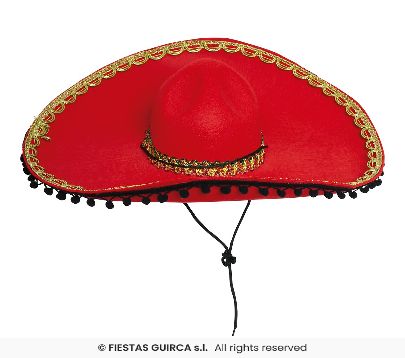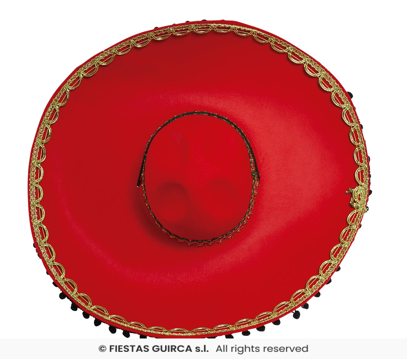 - Czerwony kapelusz sombrero zdobiony złotym obszyciem
