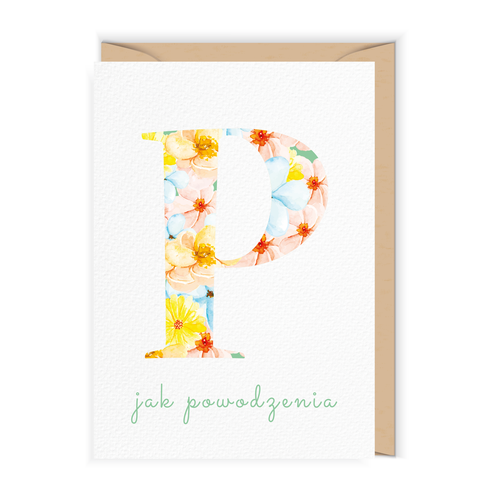 Otwierana kartka, pusta w środku, wykonana na papierze (z certyfikatem EFC) z wyraźnie widoczną fakturą. W zestawie ekologiczna koperta.