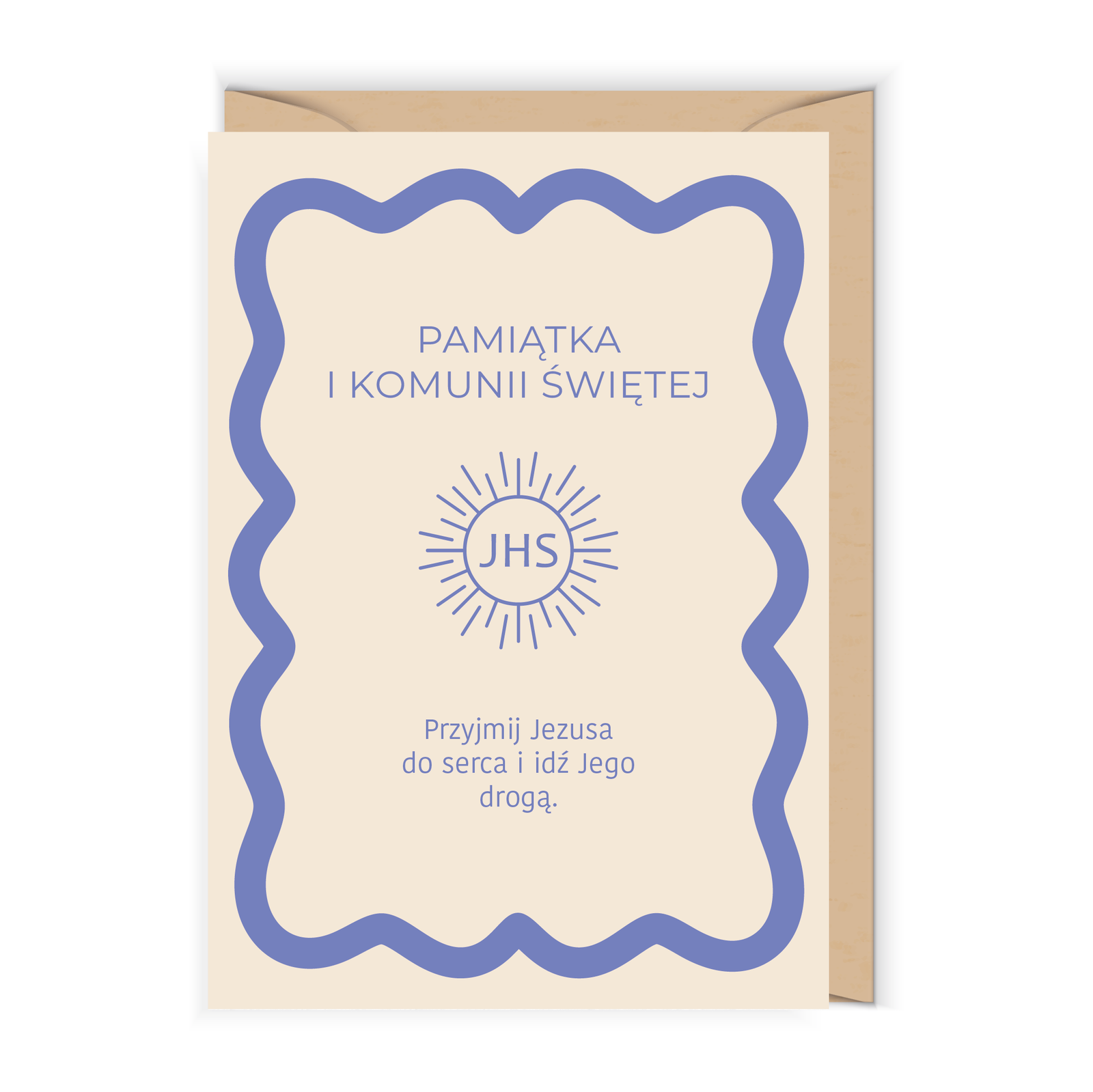 Otwierana kartka, pusta w środku, wykonana na papierze (z certyfikatem EFC) z wyraźnie widoczną fakturą. W zestawie ekologiczna koperta.
