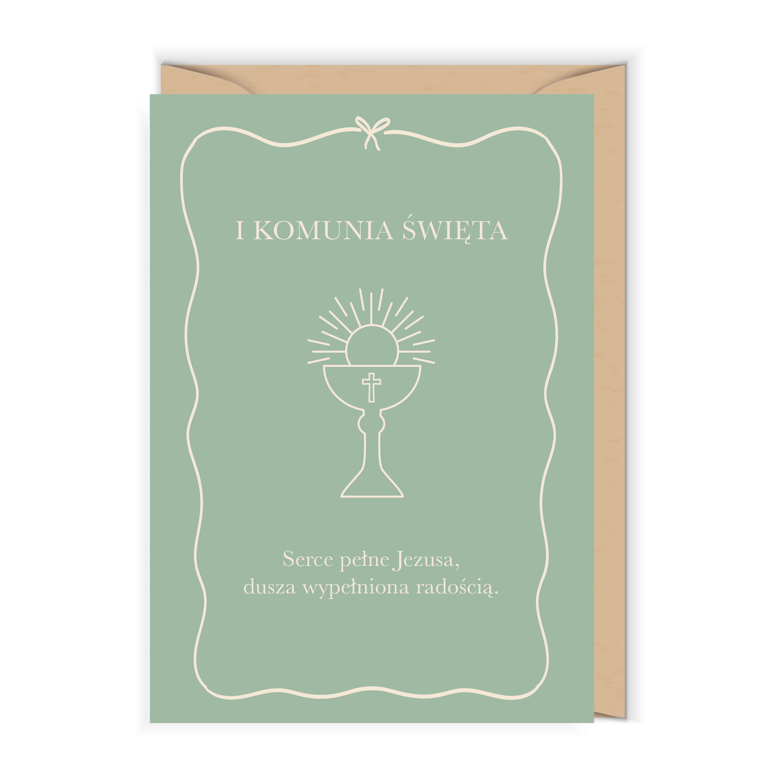 • Otwierana kartka, pusta w środku, wykonana na papierze (z certyfikatem EFC) z wyraźnie widoczną fakturą. W zestawie ekologiczna koperta.