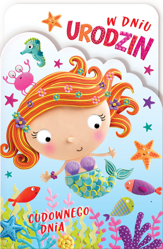 Kartka urodzinowa Syrenka - harmonijka z kolorowanką
