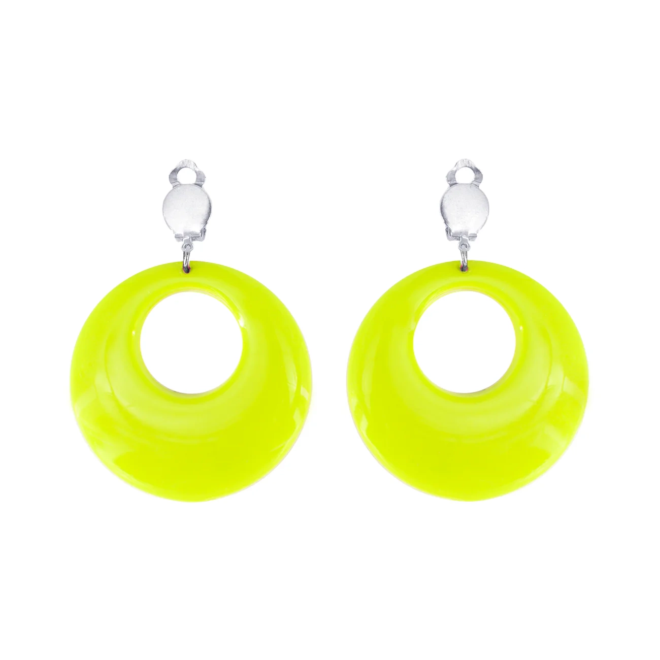 Kolczyki neonowe Koła żółte klipsy 4,5cm