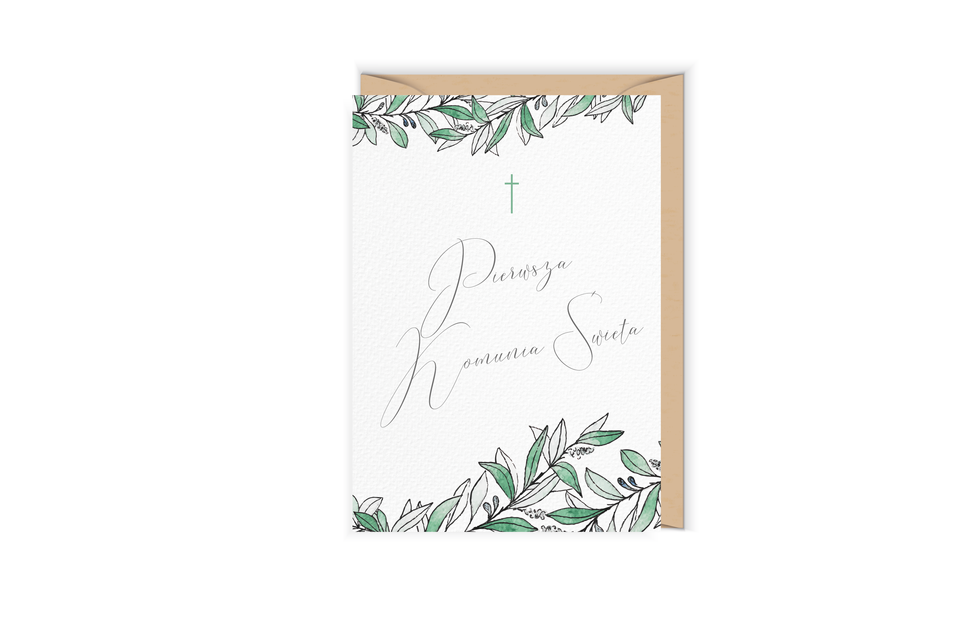 - Otwierana kartka, pusta w środku, wykonana na papierze (z certyfikatem EFC) z wyraźnie widoczną fakturą. W zestawie ekologiczna koperta.