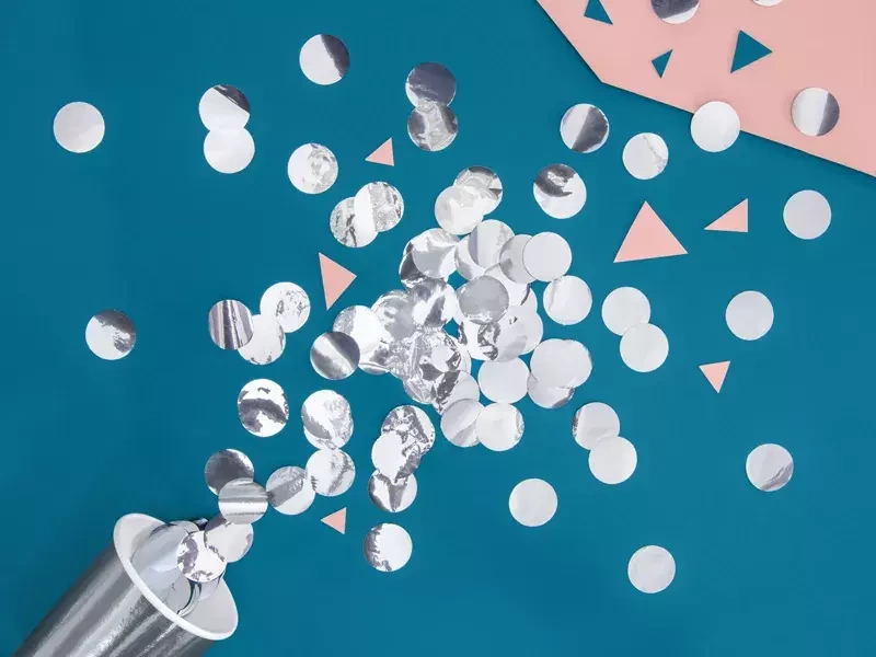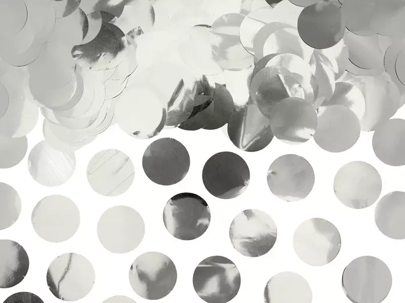 • Konfetti Kółka, wykonane z folii w kolorze srebrnym,