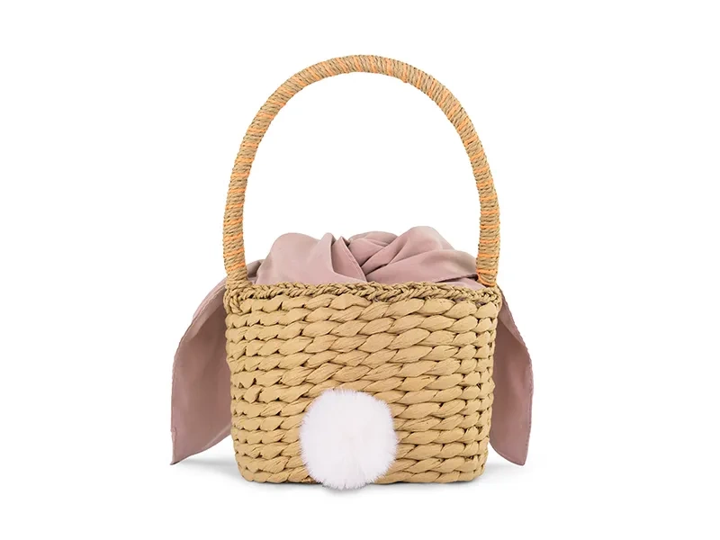 - Koszyk Króliczek wykonany z papieru z materiałowymi uszami w kolorze różowym,