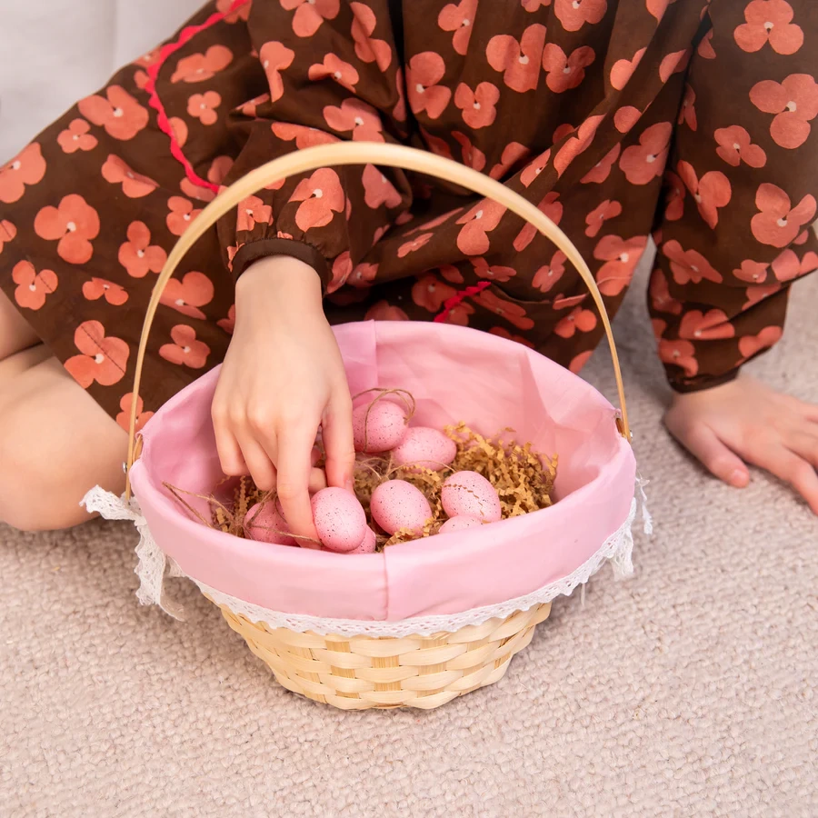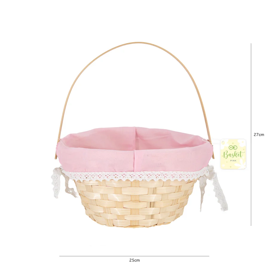 - Koszyk wielkanocny wyłożony różową tkaniną