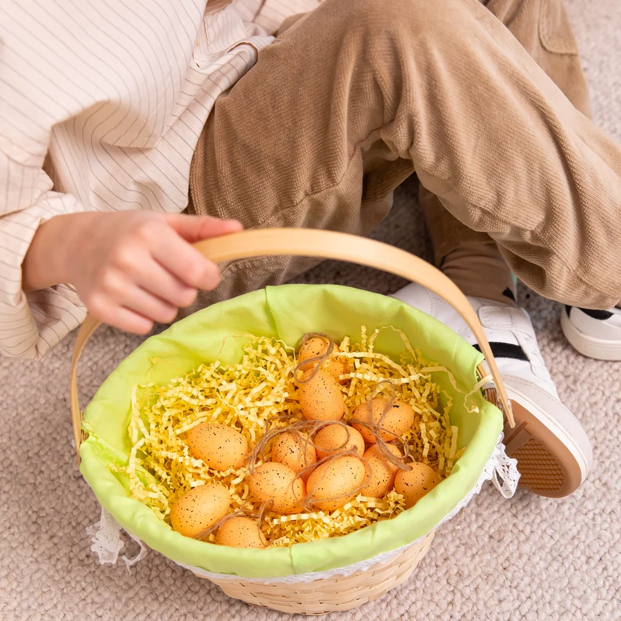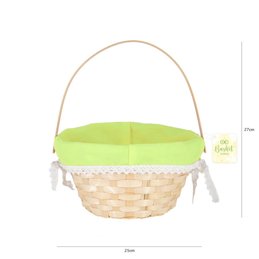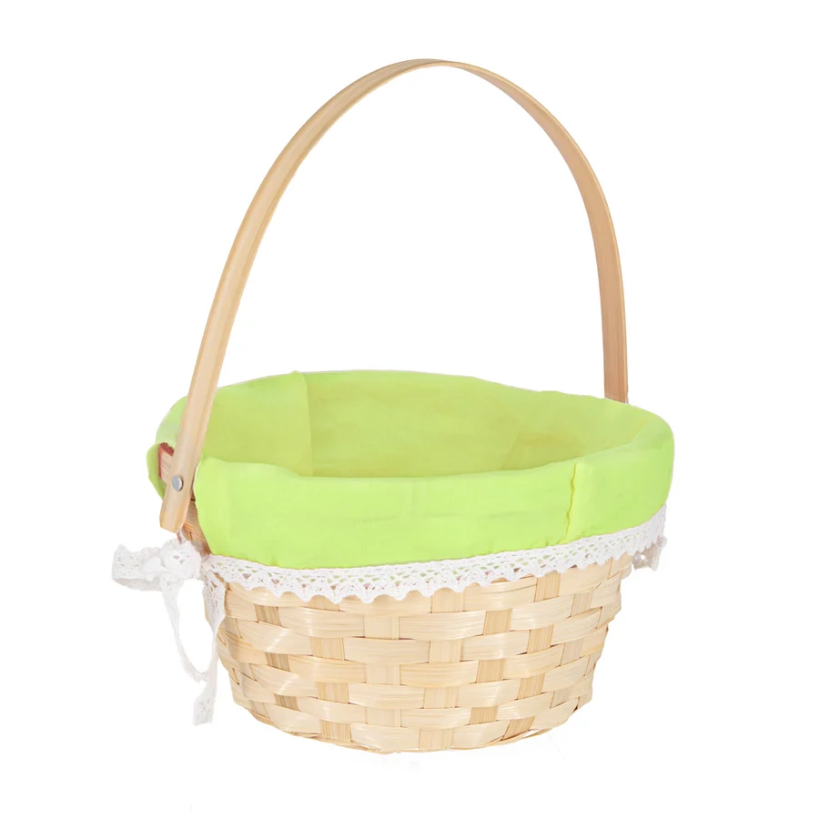 - Koszyk wielkanocny wyłożony zieloną tkaniną