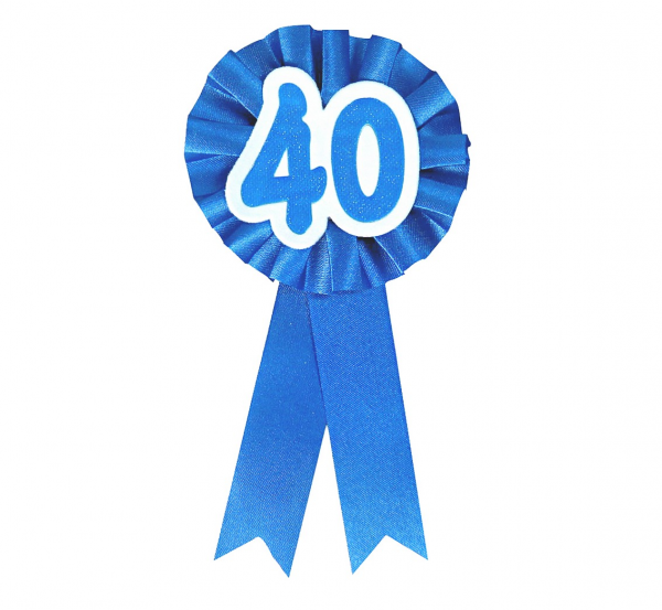 - Odznaka wykonana z niebieskiej tasiemki mocowanej na agrafce.