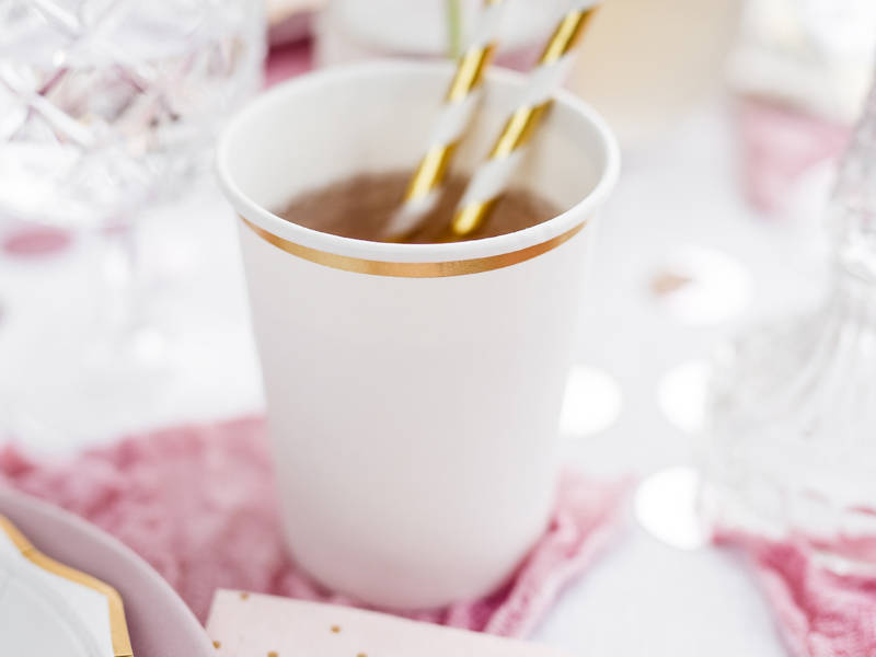 - Kubeczki papierowe w kolorze białym ze złotymi brzegami,