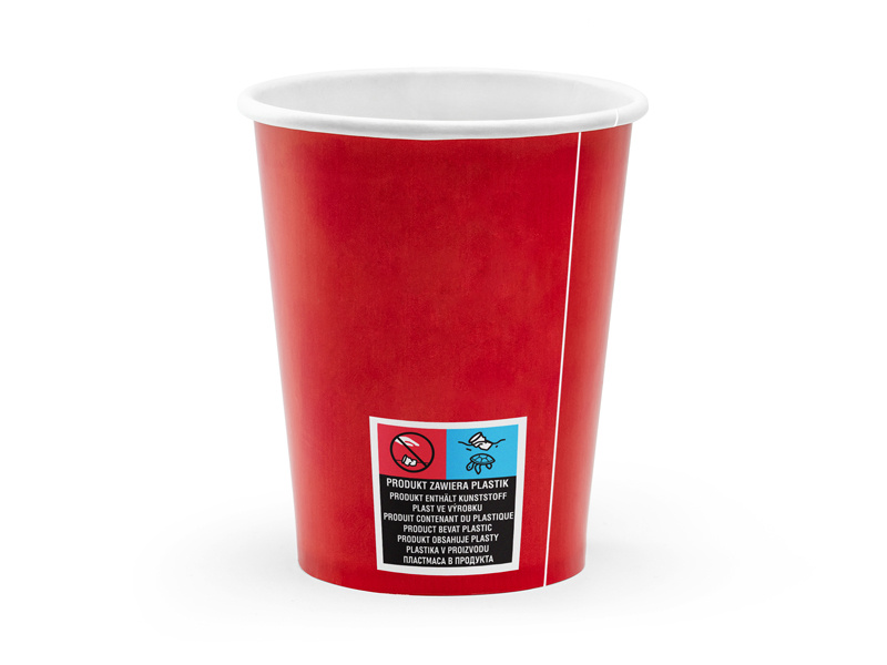 • Kubeczki papierowe Piraci w kolorze czerwonym z białym nadrukiem.