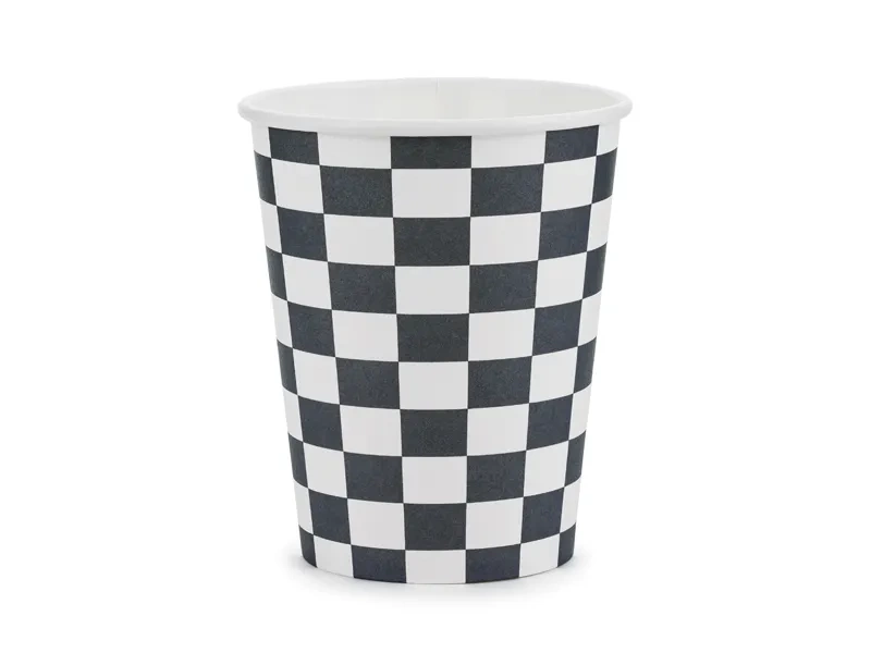 - Kubeczki papierowe Szachownica, mix kolorów ze złotym nadrukiem,