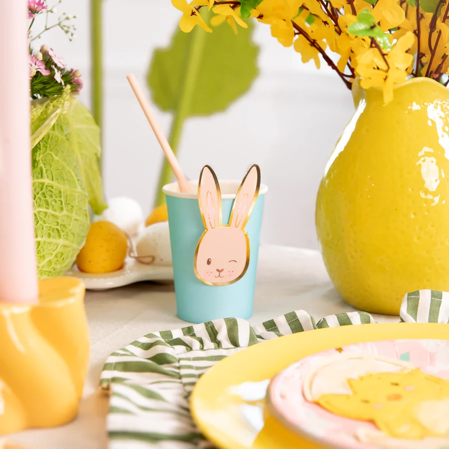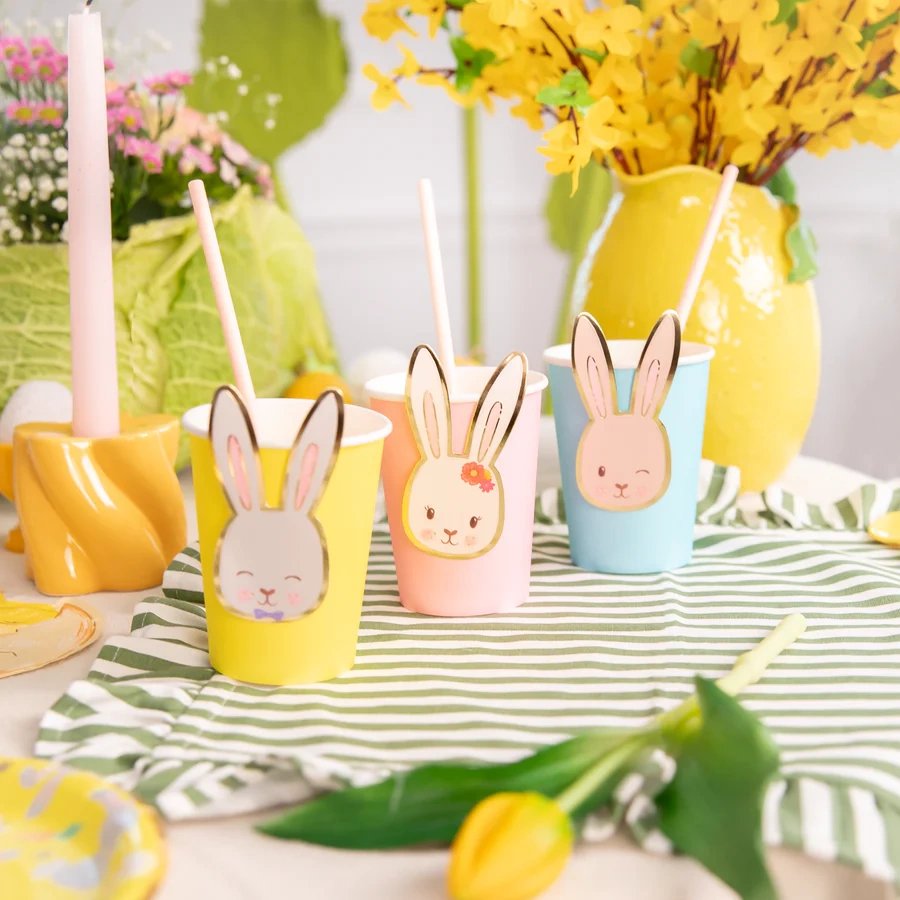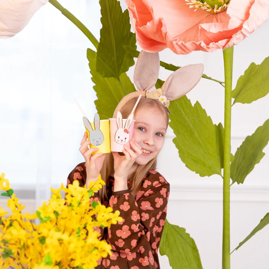 • Kubeczki wielkanocne mix kolorów DIY: 2 szt. niebieskie, 2 szt. różowe, 2 szt. żółte. Kubeczki z dekoracją głowy zajączka wielkanocnego do umieszczenia na froncie.
