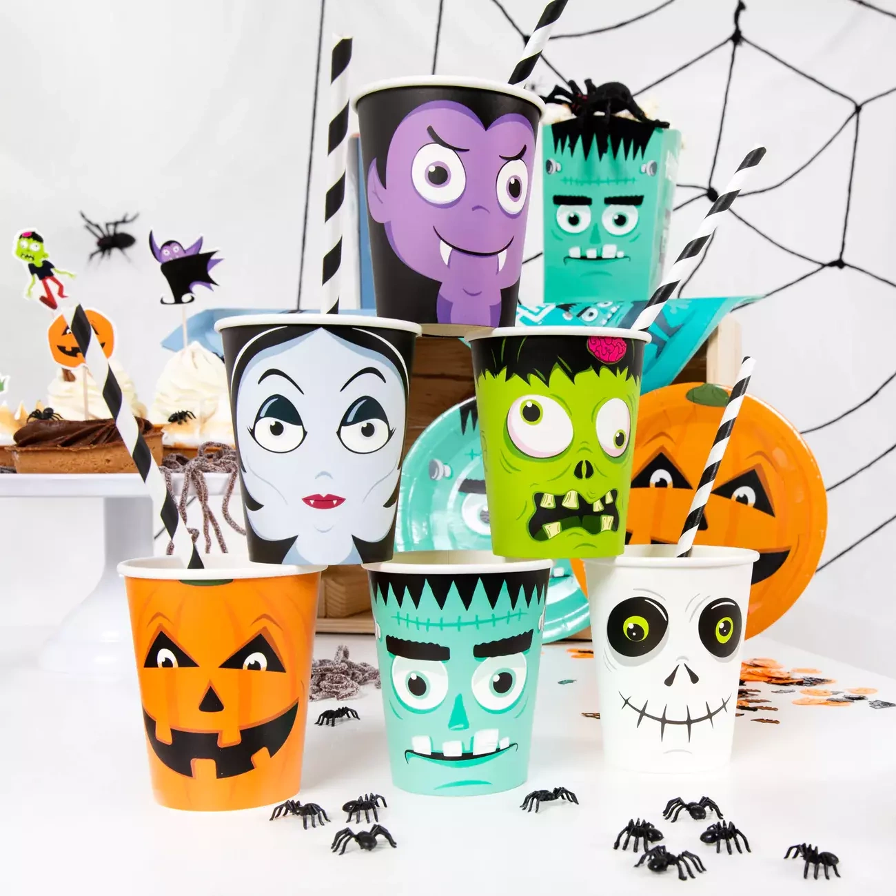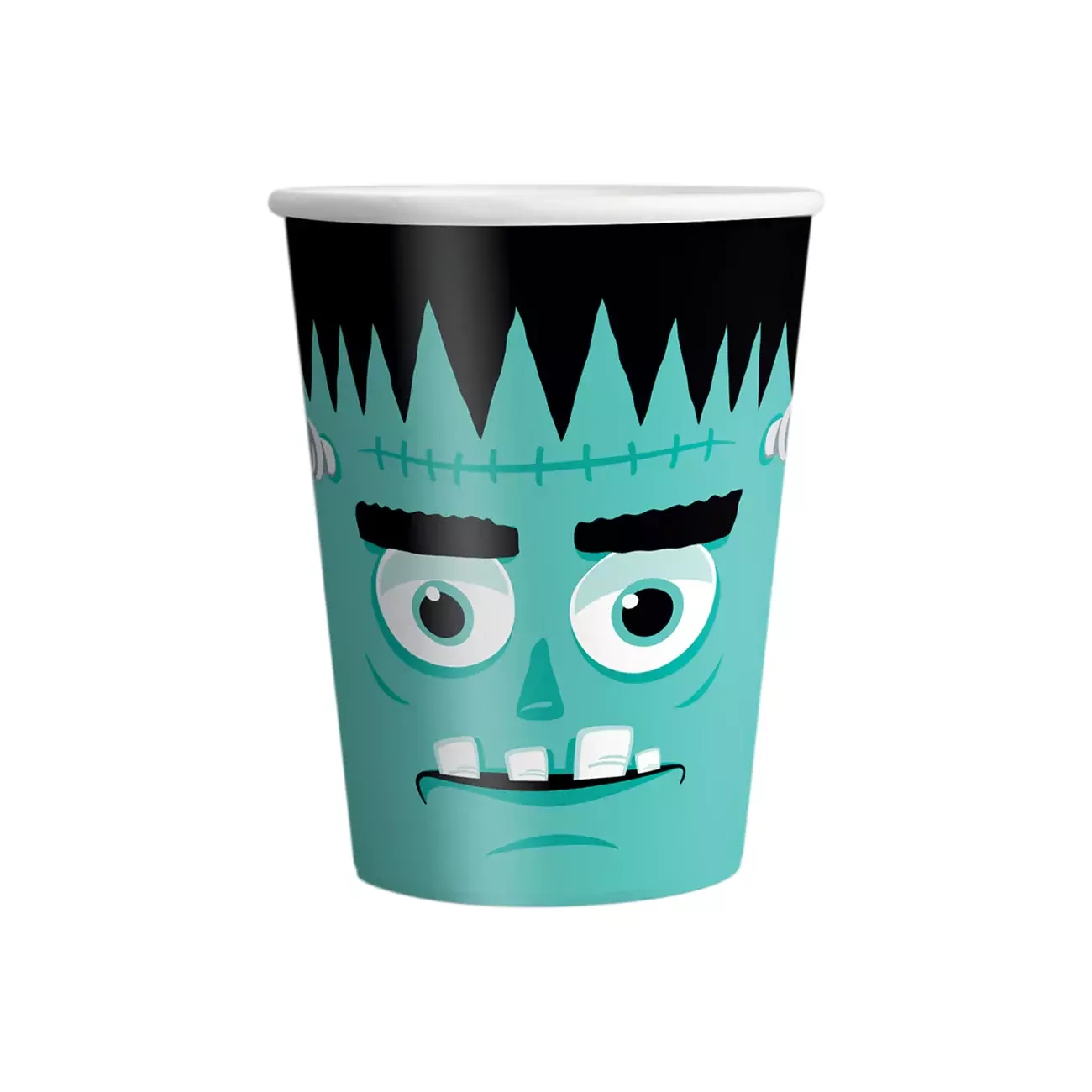 • W zestawie 6 szt. papierowych kubków z motywami zombie, Frankensteina, wampira, kościotrupa, dyni, wampirzycy
