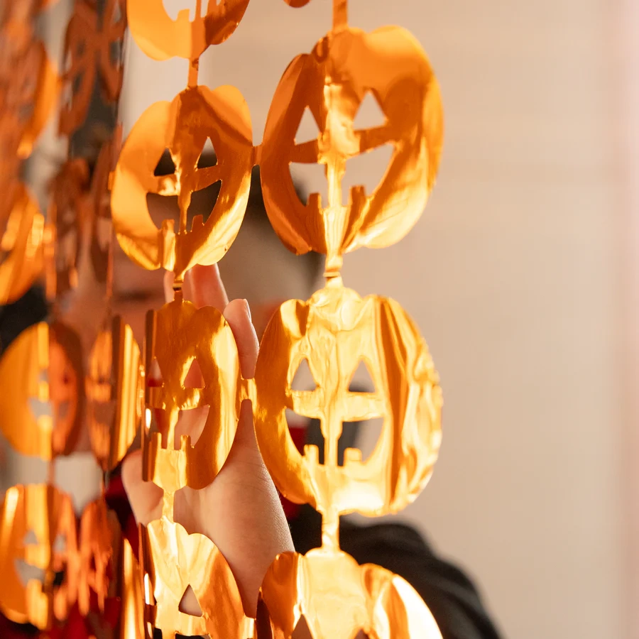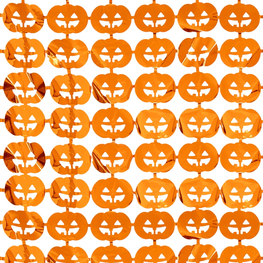 Kurtyna imprezowa Dynie wykonana została z pomarańczowej błyszczącej folii. Będzie wyróżniającym się elementem kompozycji udekorowanych na Halloween wnętrz.