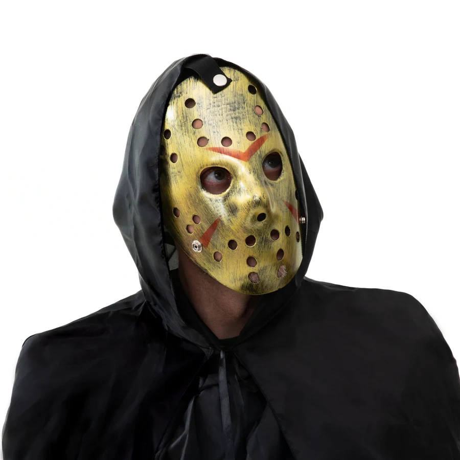 - Maska hokejowa ze znanego horroru Piątek, trzynastego w wersji złotej. Idealna propozycja dla wielbiciela horrorów i zabaw dla przebierańców zwłaszcza w Halloween.