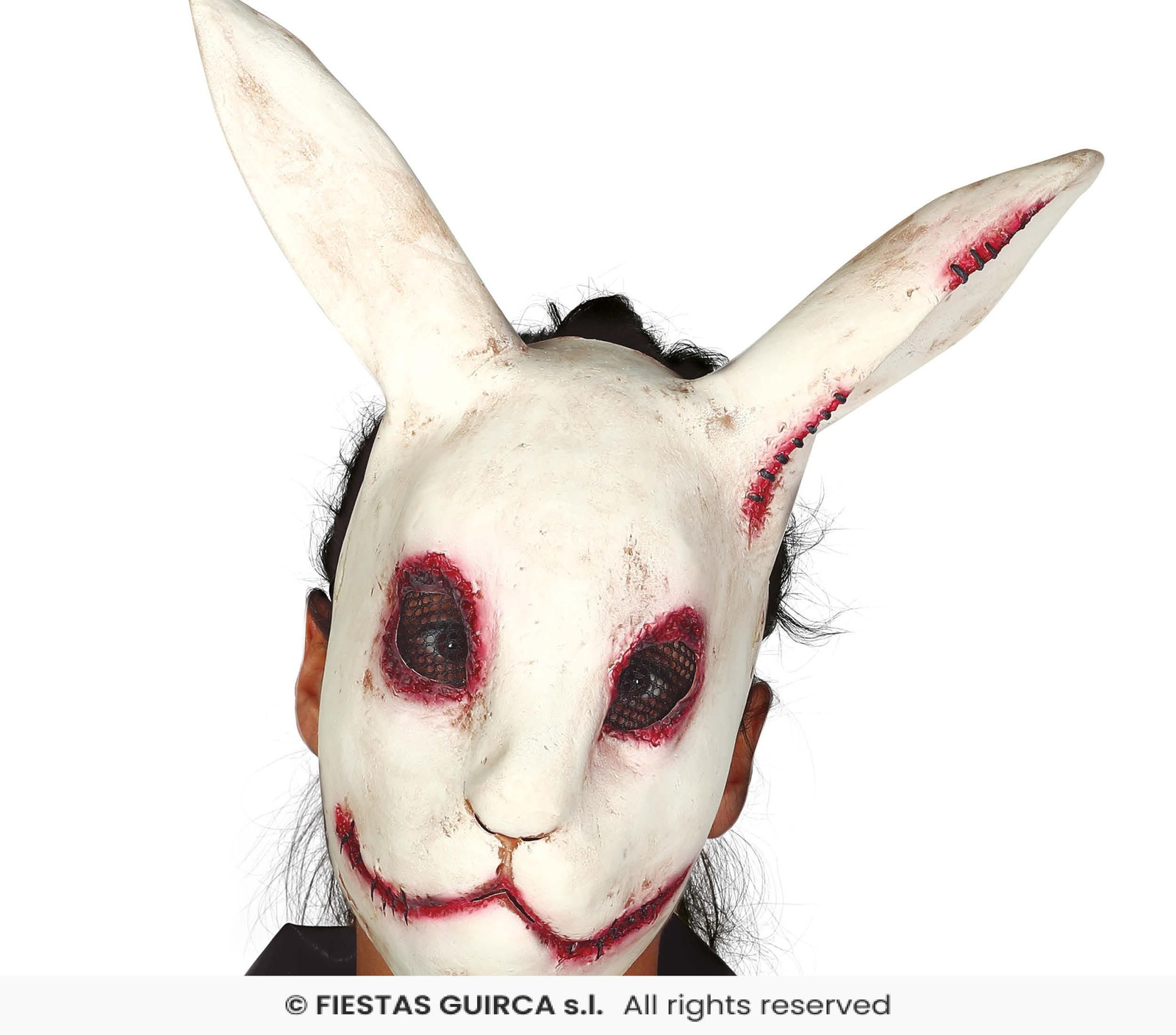 - Lateksowa maska z wizerunkiem przerażającego królika