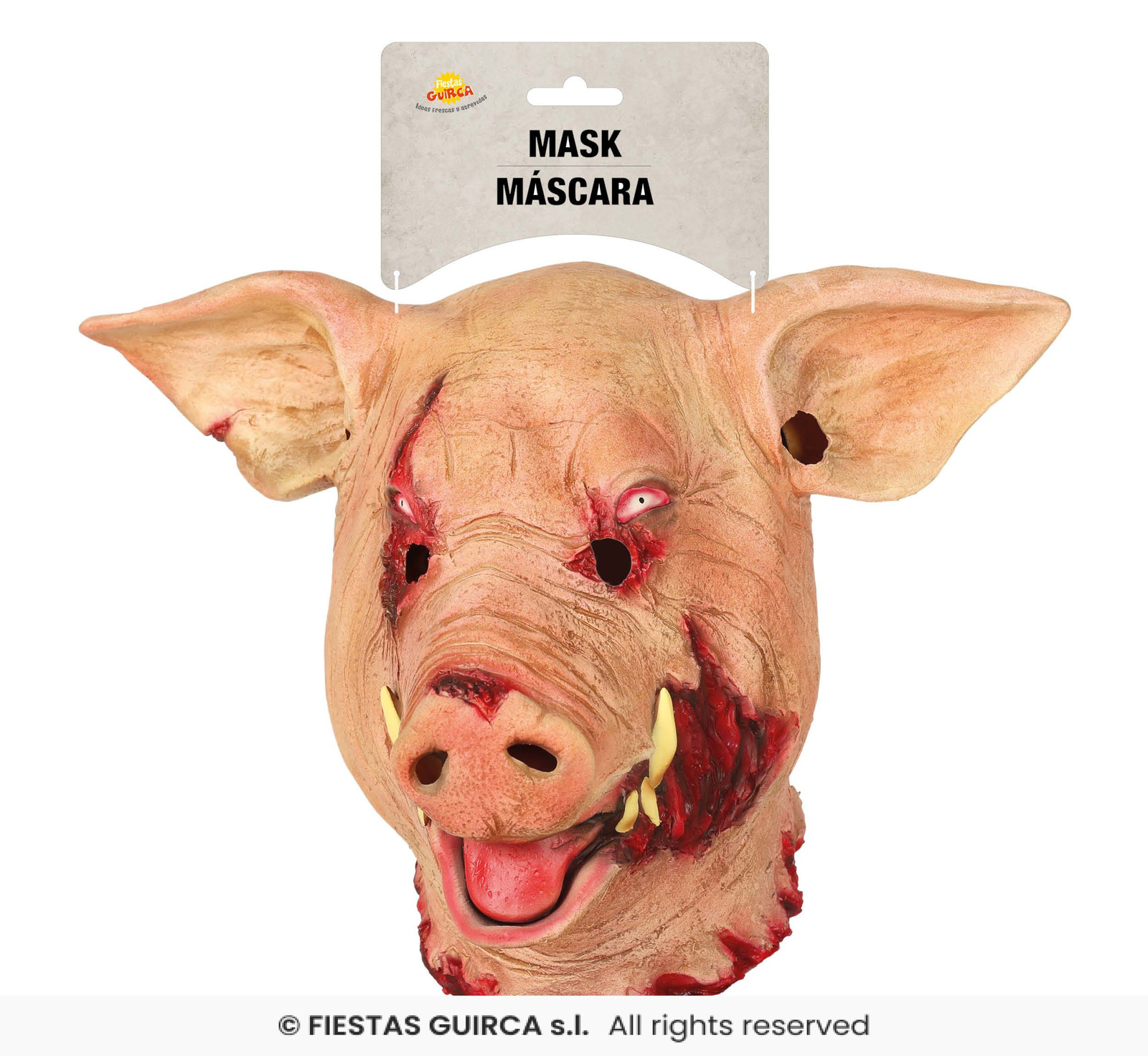 - Lateksowa maska z wizerunkiem przerażającej świni z horrou