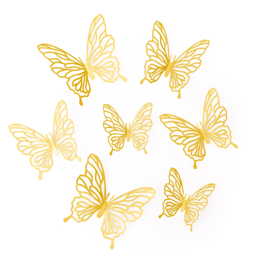 Naklejki na ścianę 3D Motyle ażurowe złote 12szt.
