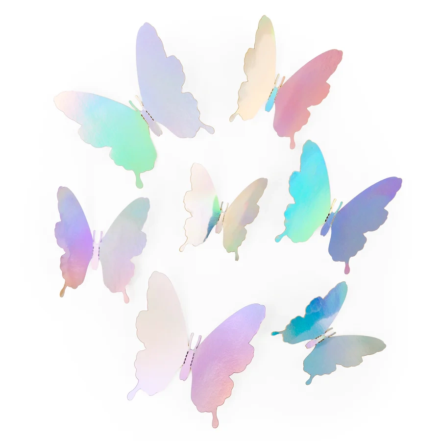 Naklejki na ścianę 3D Motyle holograficzne srebrne 12szt.