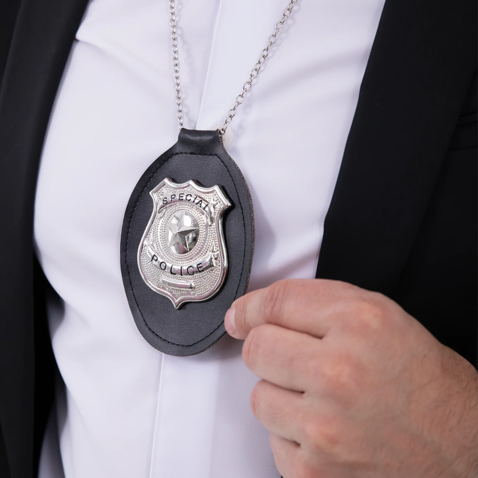 Naszyjnik z odznaką „Special Police” to efektowny i niezwykle realistyczny dodatek do każdego przebrania policjanta, detektywa czy agenta specjalnego. Metalowa odznaka w srebrnym kolorze, zamocowana na eleganckiej czarnej etui oraz zawieszona na długim, metalowym łańcuchu, natychmiast przyciąga wzrok i nadaje stylizacji profesjonalnego charakteru.