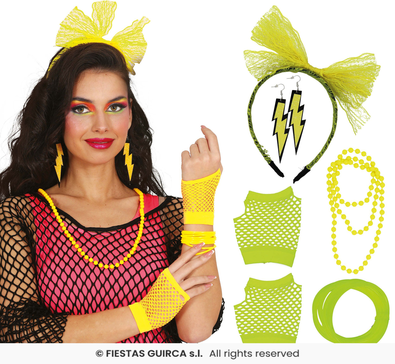 - Zestaw dodatków do stroju w stylu lat 80tych w kolorze żółtym neonowym
