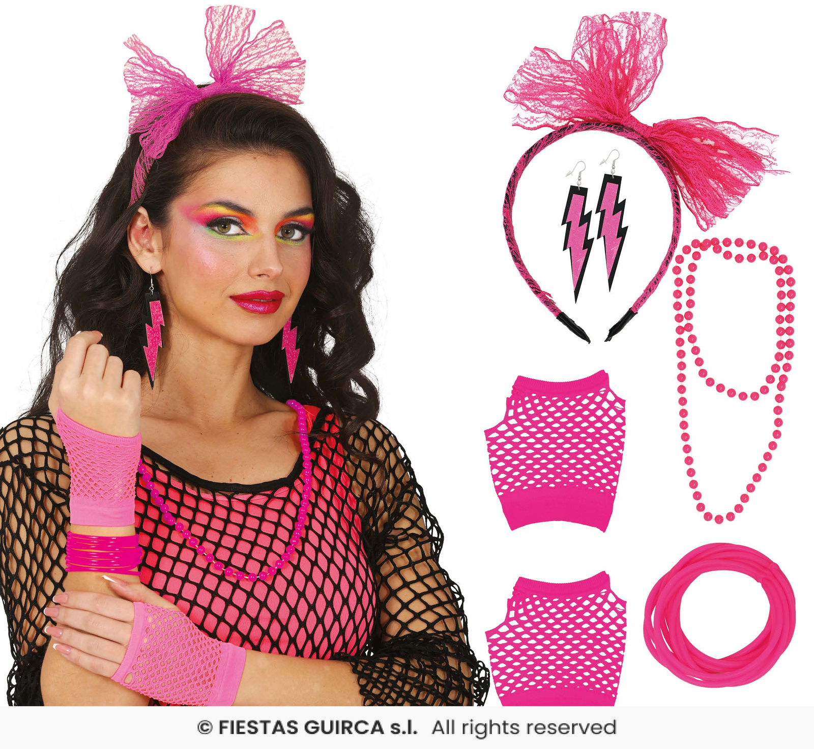 - Zestaw dodatków do stroju w stylu lat 80tych w kolorze różowym neonowym
