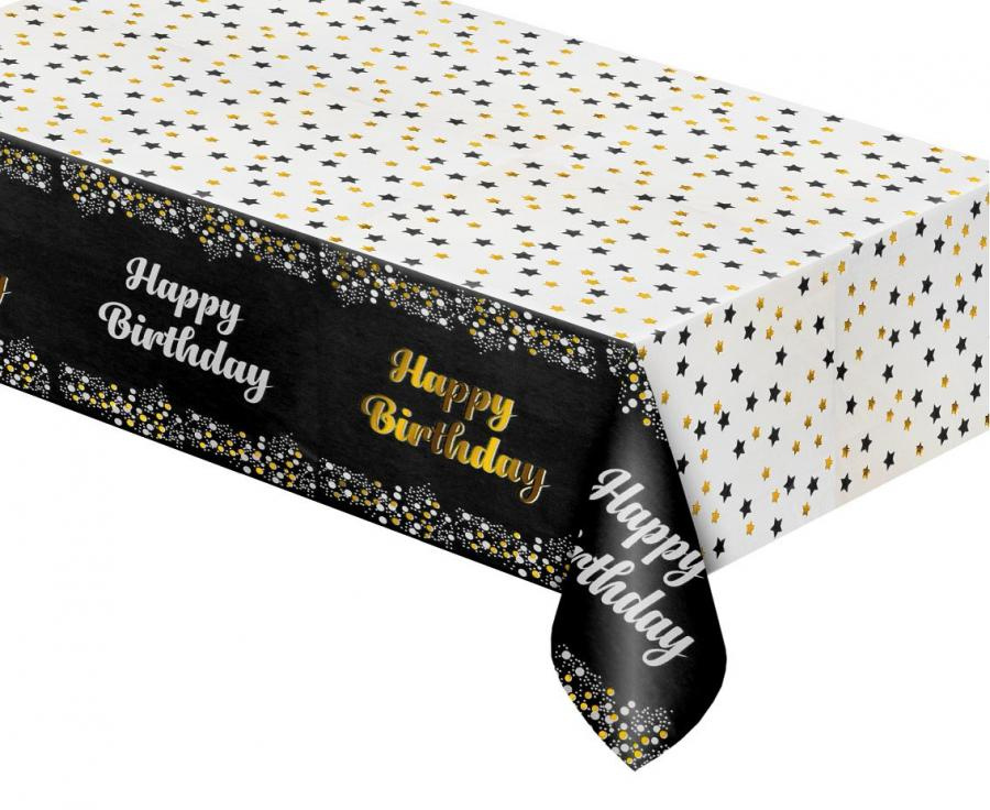 Obrus foliowy B&C "Happy Birthday" czarny, 137x183 cm