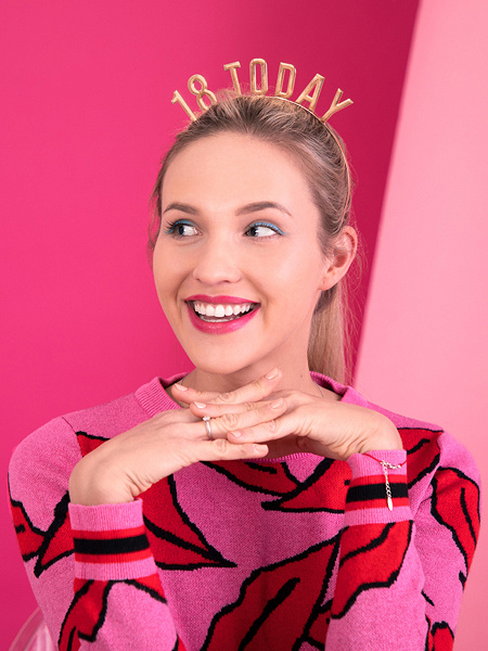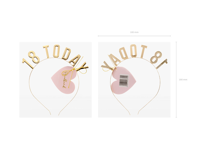 - Metalowa opaska z napisem 18 Today w kolorze złotym.