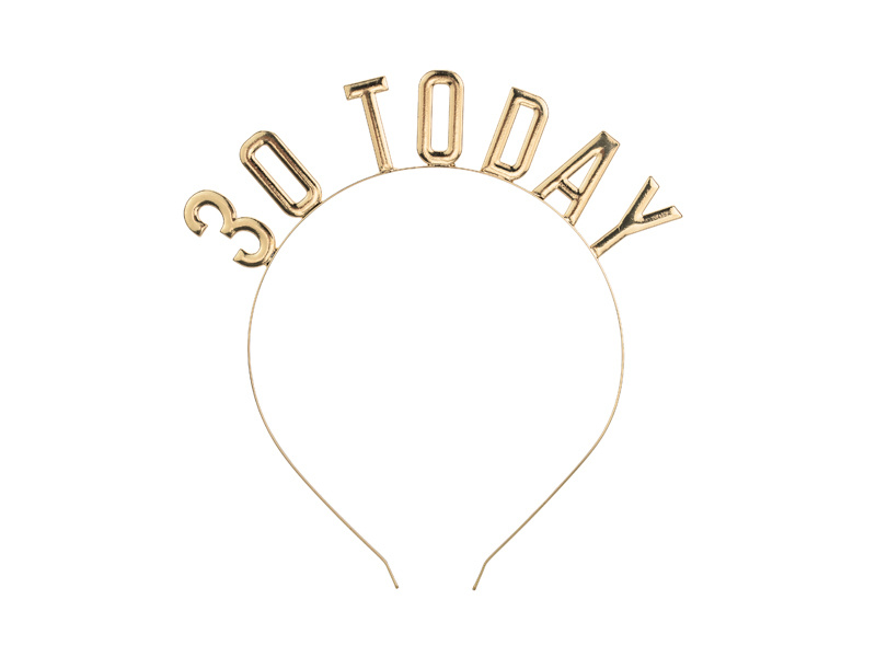 - Metalowa opaska z napisem 30 Today w kolorze złotym.
