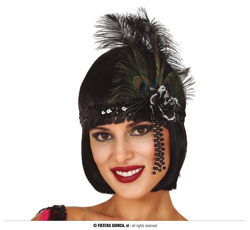 - Opaska czarna ozdbiona piórkiem w stylu lat 20,30.