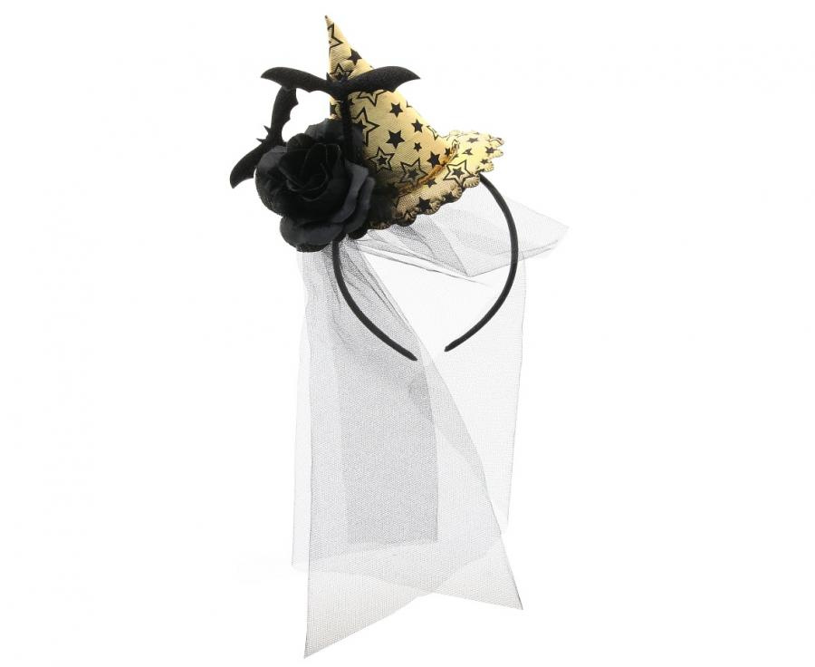- OPASKA NA GŁOWĘ KAPELUSZ Z WOALKĄ, ZŁOTA