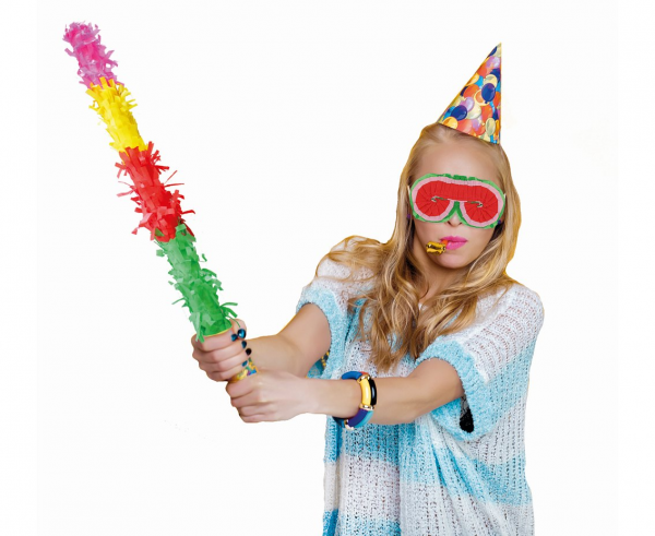 - Kolorowa opaska na oczy do rozbijania piniaty