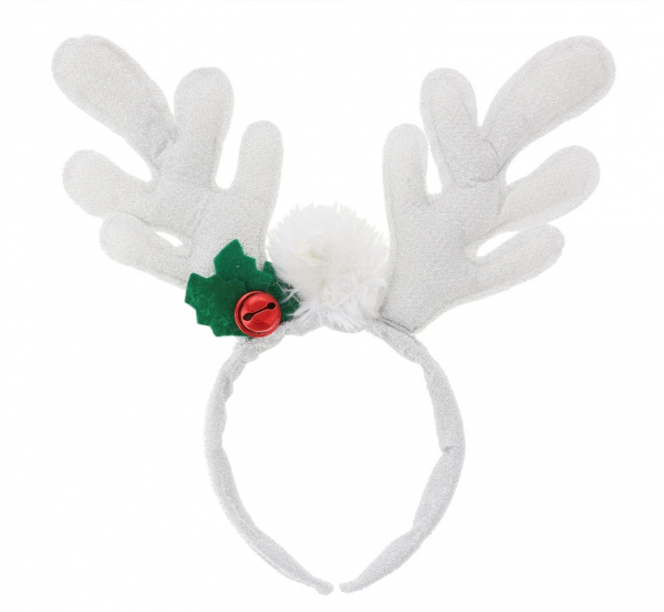 - z przymocowanymi rogami, białym puszkiem i czerwonym dzwoneczkiem.