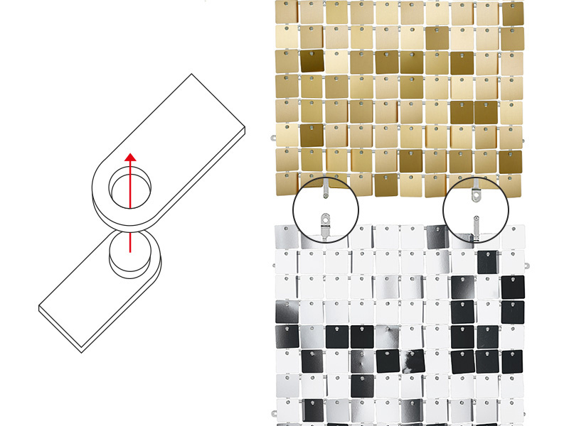 Panele cekinowe posiadają zatrzaski na bokach, które umożliwiają łączenie paneli kwadratowych w spójną całość – patrz instrukcja na karcie produktu.