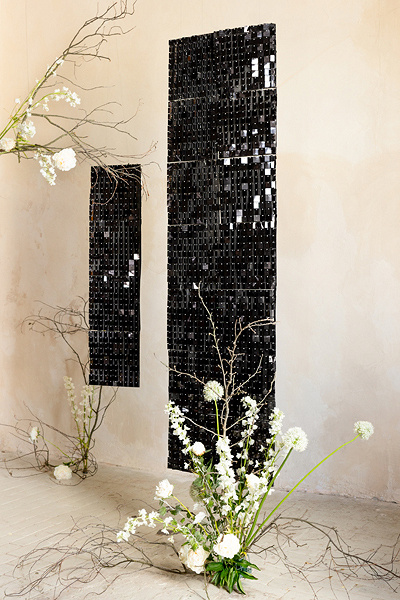 - Panel cekinowy, cekiny w kształcie kwadratów, w kolorze czarnym