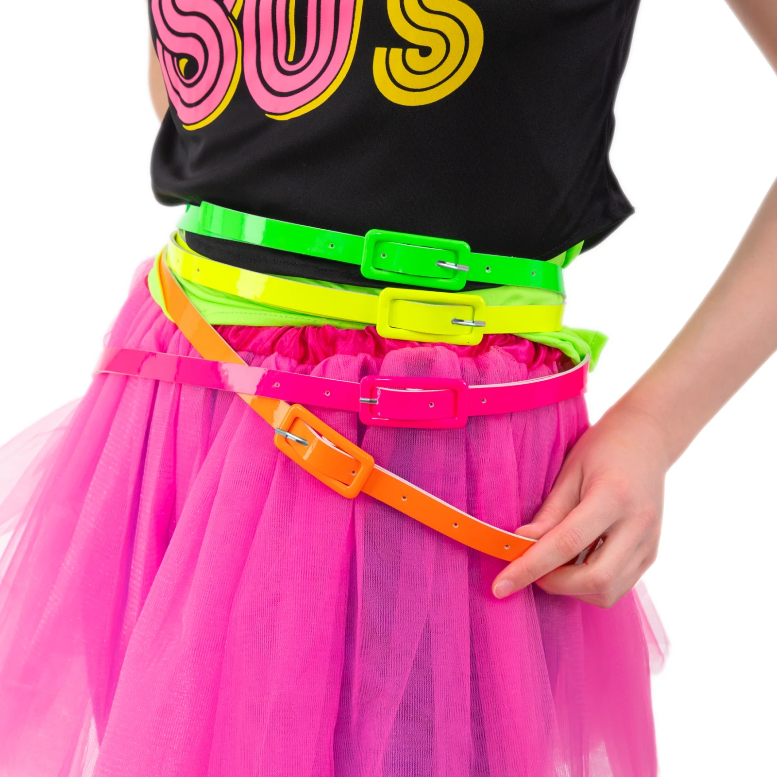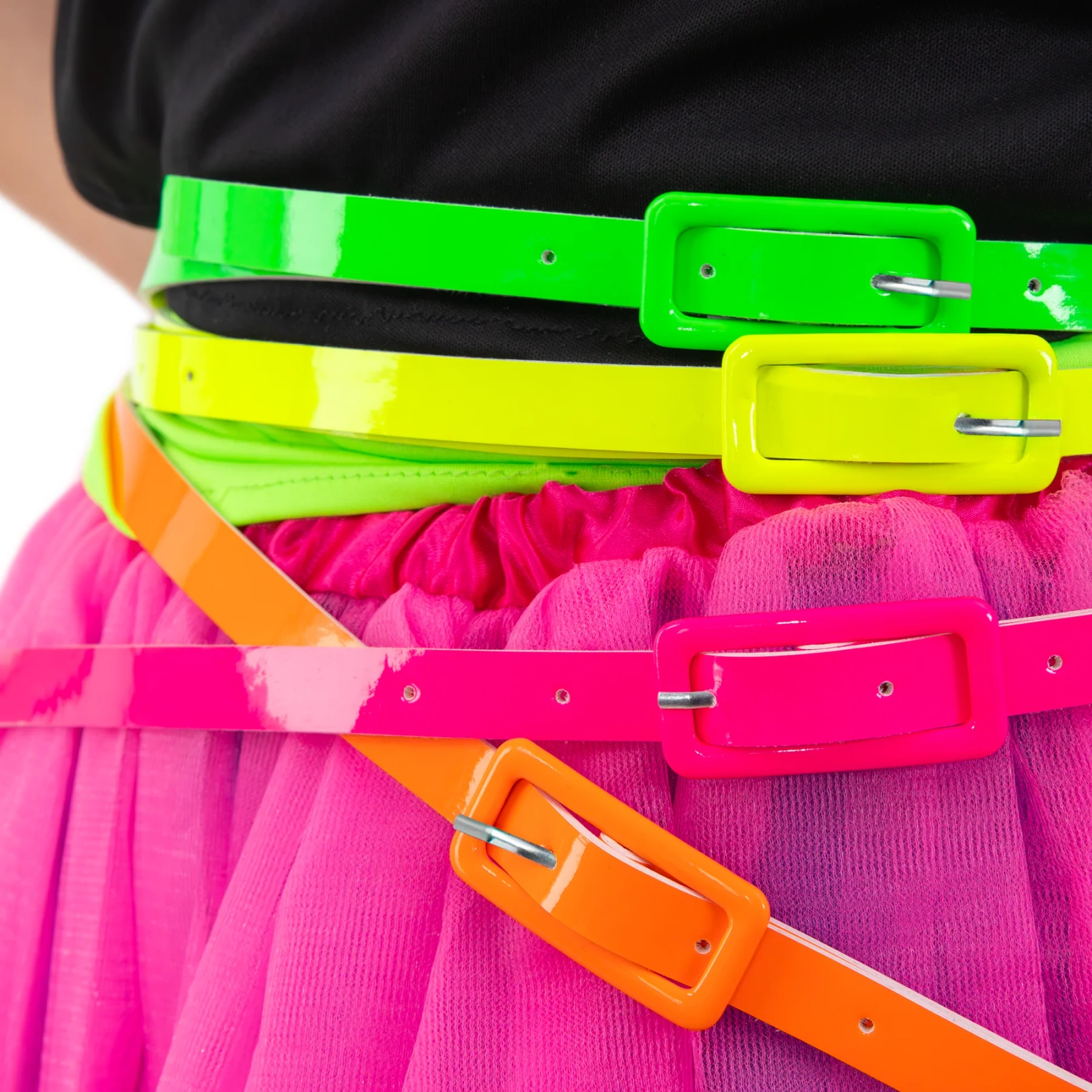 Pasek doskonale współgra z neonowymi naszyjnikami, plastikową biżuterią, okrągłymi okularami czy opaskami na włosy. Jeśli przygotowujesz stylizację grupową – na przykład dla zespołu tanecznego, paczki znajomych lub ekipy firmowej na imprezę integracyjną – neonowe paski można połączyć z innymi kolorami: zielonym, żółtym czy pomarańczowym, tworząc spójny, a jednocześnie niezwykle energetyczny look.