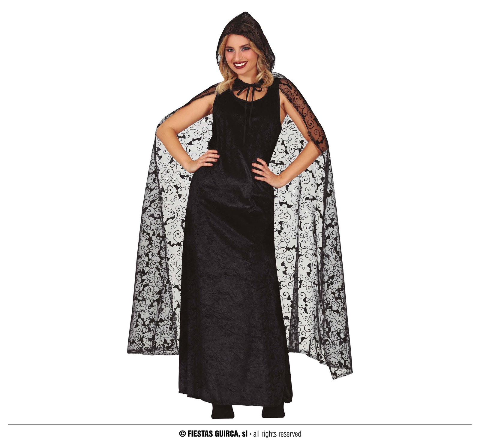 - Czarna peleryna dla dorosłych z motywem czarnych nietoperzy