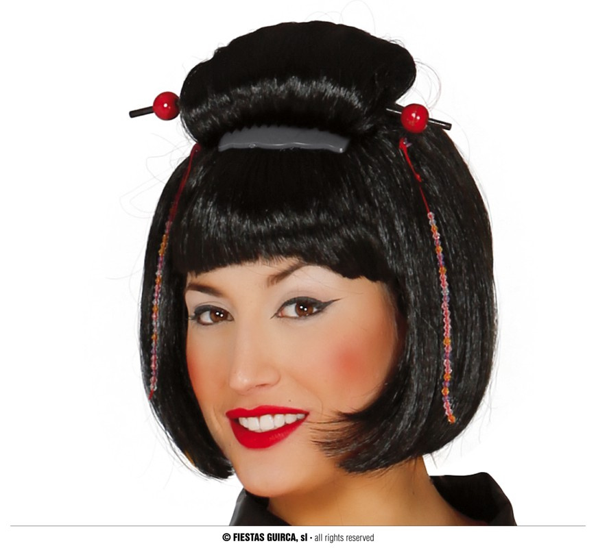 - Peruka Japonki Gejszy z patyczkami