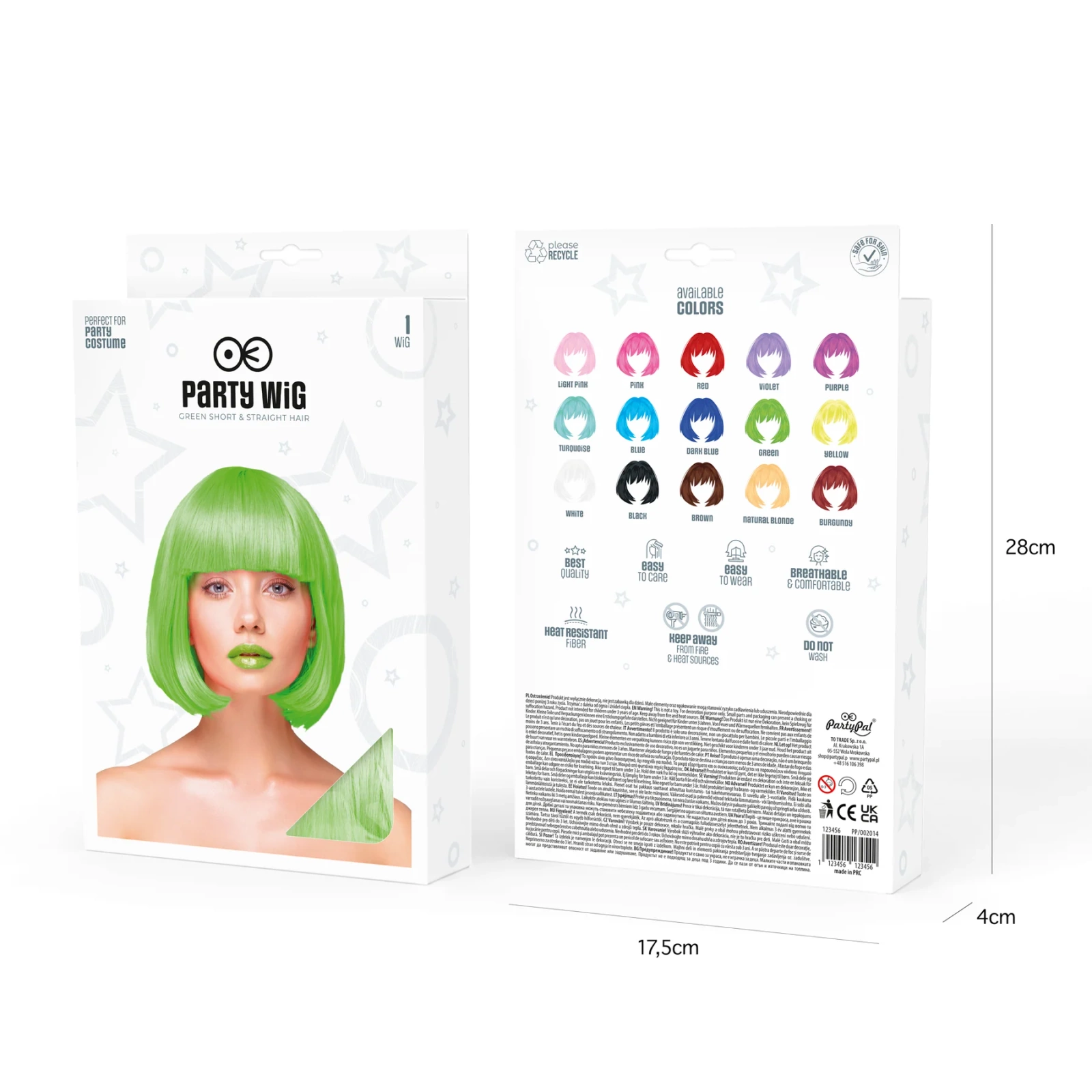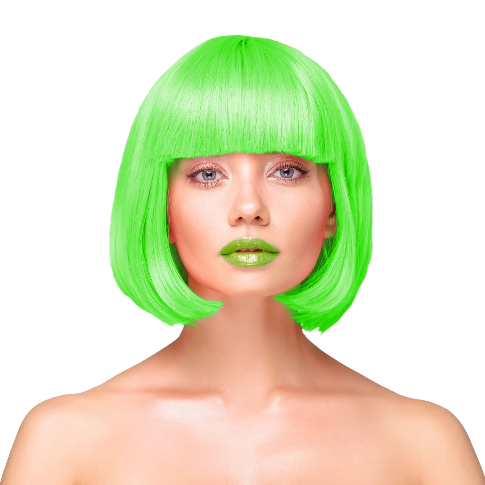 Peruka imprezowa włosy krótkie proste neonowe zielone