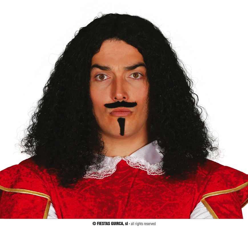 • Włosy koloru czarnego. Półdługie, kręcone, z przedziałkiem na środku.